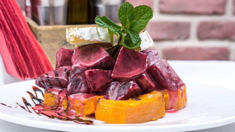 تسلق مكعبات القرع على البخار ثم تُخلط مع البنجر ثم يُضاف لهم التتبيلة وتزين بحبات الجوز المفرومة والقليل من البقدونس الطازج.